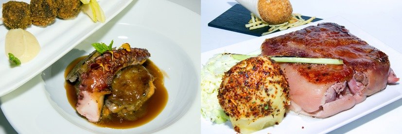 Cuatro locales apuestan por la carrillera. La Figal de Pablo la glasea con milhojas de patata y panceta ibérica. Luis II la estofa en Albariño mientras que Tierra de barros opta por el vino de Toro y el Pedro Ximénez. O’ Cachelo la baña en crema de trufa y cachelos. Por otra parte, La Lumbre y Las Meninas se decantan por la presa. El primero la brasea, acompañada de pimiento y batata en salsa de cerveza negra. El segundo la cocina en salsa strogonoff. No falta el cochinillo tradicional segoviano, asado en horno de leña y a la antigua (Arandilla y La Buganvilla). El Burladero ofrece un lomo arrollado con patata asada.