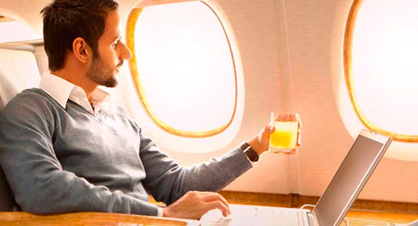 En Emirates, los pasajeros pueden permanecer conectados de forma gratuita a bordo con el Wi-Fi libre de la aerolínea. Los pasajeros pueden disfrutar de 10 MB de datos de forma gratuita o comprar 500 MB por sólo $ 1. La aerolínea ofrece a cada pasajero un teléfono satelital y servicios de SMS y de correo electrónico que aparecen en pantalla. Los viajeros también pueden seguir el progreso de vuelo actualizado a través de un mapa de canales de la aerolínea, Airshow. De esa manera, usted sabrá exactamente cuando estás aterrizando para programar las reuniones o actividades de post-vuelo. (Fuente: time.com)