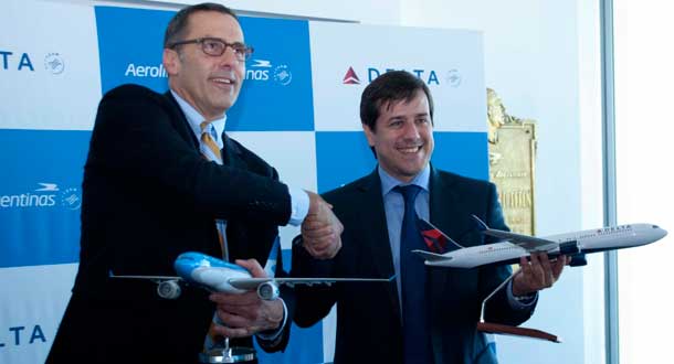 (Global).- Aerolíneas Argentinas y Delta Air Lines anunciaron hoy la firma de un acuerdo de código compartido que ofrecerá a los clientes de ambas compañías mayores opciones de vuelos entre los Estados Unidos y Sudamérica. El acuerdo ofrece a Aerolíneas Argentinas la posibilidad de operar en código compartido 14 destinos de Delta en los Estados Unidos. Por otra parte, los clientes de Delta pueden acceder a los vuelos operados por Aerolíneas Argentinas desde el Aeropuerto Internacional Ministro Pistarini (EZE) a Montevideo – Uruguay (MVD) así como también a Mendoza (MDZ) y Córdoba (COR), dos importantes destinos de negocios en Argentina.