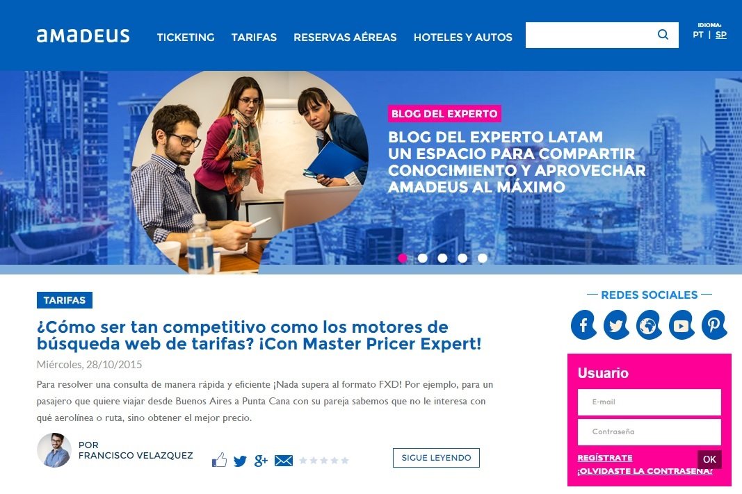 XXXXXX, 29 de Octubre del 2015: A partir de hoy, Amadeus lanza el Blog del Experto Latinoamérica (blogdelexpertolatam.com) un espacio para compartir conocimiento con sus clientes, lo que les permitirá aprovechar mucho más la tecnología de Amadeus.