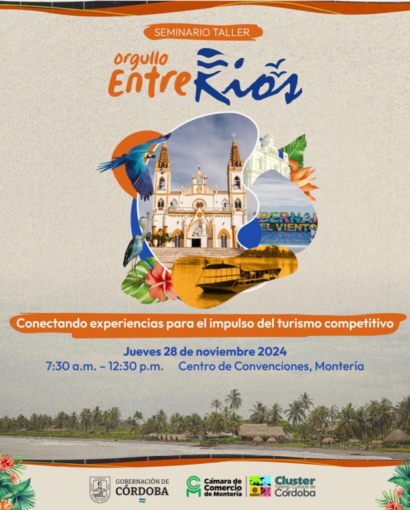 Se llevó a cabo en el Centro de Convenciones de Montería, el seminario Taller “Entre Rios”, organizado por la Oficina de Turismo y Artesanías de la Gobernación de Córdoba con el apoyo del Clúster de Turismo. Al evento asistieron alrededor de 100 personas entre representantes de alcaldías, oficinas y entidades de turismo de los municipios y subregiones del departamento “con el objetivo de trabajar en la cocreación del plan sectorial del Turismo de Córdoba”.