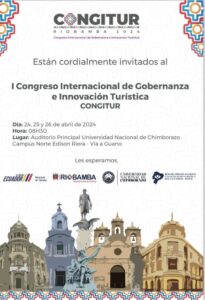 El Municipio de Riobamba en colaboración con la Red de Observatorios e Investigación Turística del Ecuador, ROITE y la Universidad Nacional de Chimborazo ha planificado la organización del I Congreso Internacional de Turismo Destinos Planificados: Experiencias sobre Gobernanza e Innovación Turística – CONGITUR. «Destinos Planificados experiencias sobre la gobernanza turística» dirigido a profesionales técnicos responsables de la gestión turística de los GADsM del Ecuador, en el marco del proyecto Impulso a la gestión de destinos turísticos del Ecuador, considerando al turismo como fuente importante de desarrollo económico, social y cultural de los territorios.