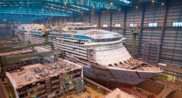 (Alemania).- El revolucionario crucero Anthem of the Seas, hermano gemelo del Quantum of the Seas, ambos de Royal Caribbean, abandonó ayer el dique seco del Astillero Meyer, donde se construyó mediante el ensamblaje de módulos, el casco de 347 metros de eslora. El nuevo buque de la naviera norteamericana se destaca, al igual que su hermano, por el protagonismo de la alta tecnología que le permite ofrecer innovadores servicios tales como: RipCord by iFLY® el primer simulador de paracaidismo en alta mar. North StarSM la cápsula en forma de una piedra preciosa que sube a más de 90 metros sobre el nivel del mar. Las sorprendentes vistas de 360° del mar y los destinos hacen del North Star una de las características más esperadas de estos barco.