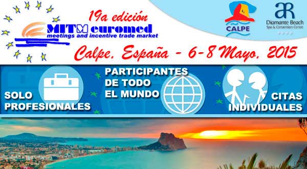 (España).- El próximo 6 de Mayo dará comienzo la 19a edición de MITM Euromed, Meetings and Incentive Travel Market, que este año se celebrará en Calpe, España, del 6 al 8 de Mayo, con el patrocinio del Ayuntamiento de Calpe y el Hotel AR Diamante Beach Spa & Convention Centre****, sede de la feria. En esta edición se darán cita participantes de 23 países: Alemania, Argentina, Bélgica, Bulgaria, Croacia, Dinamarca, Ecuador, España, Francia, Holanda, Hungría, Irlanda, Italia, Noruega, Polonia, Portugal, Reino Unido, República Checa, República Dominicana, Rusia, Suecia, Turquía y Ucrania.