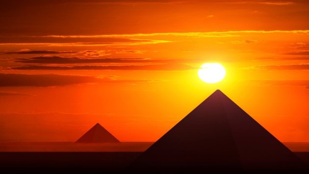 Ancient pyramids in sunset