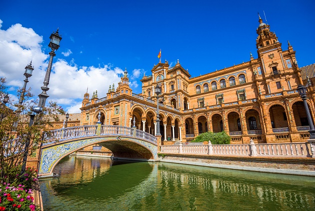 Seville, Spain at Spanish Square (Plaza de Espana).