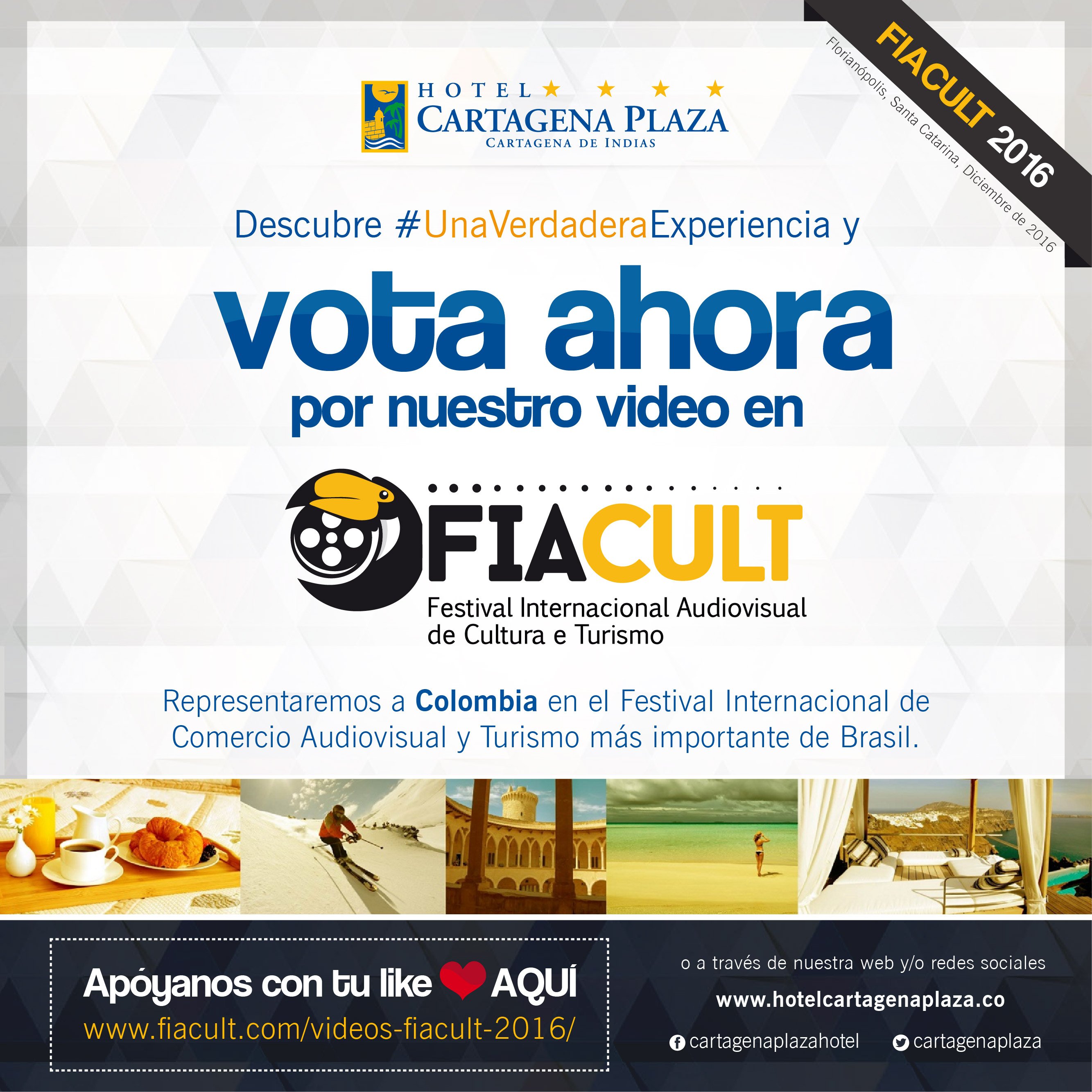 Hotel Cartagena Plaza, participará en la tercera edición de FIACULT representando a Colombia con su nuevo video Institucional, desarrollado bajo la campaña: #Una Verdadera Experiencia. Un proyecto que invita a descubrir los encantos de la Heroica Cartagena de Indias, enmarcados dentro del buen servicio y la hospitalidad del Hotel Cartagena Plaza, con imágenes que destacan la belleza de su ciudad, la calidez de su servicio y la veracidad de su oferta de alojamiento en unos de los destinos colombianos más atractivos para los viajeros de todo el mundo.