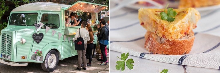 Food trucks de Lucia’s (izda.) y una de sus versiones de la tortilla de patatas. EFT..