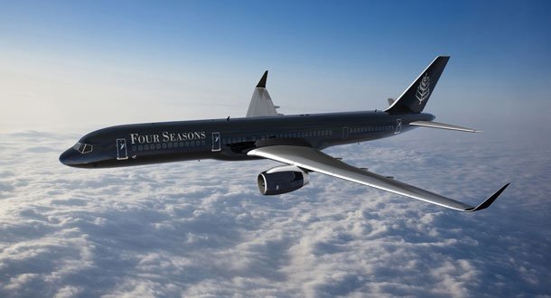 Con una decoración inspirada por «caviar y champagne», el avión tiene 52 asientos de cuero que se convierten en cama, alfombras de lana tejida a mano y elegantes mesas. Esto representa 150 asientos menos que en los vuelos comerciales que se operan en un 757. Por afuera, la aeronave tiene un lustroso logotipo de Four Seasons sobre un fondo negro.
