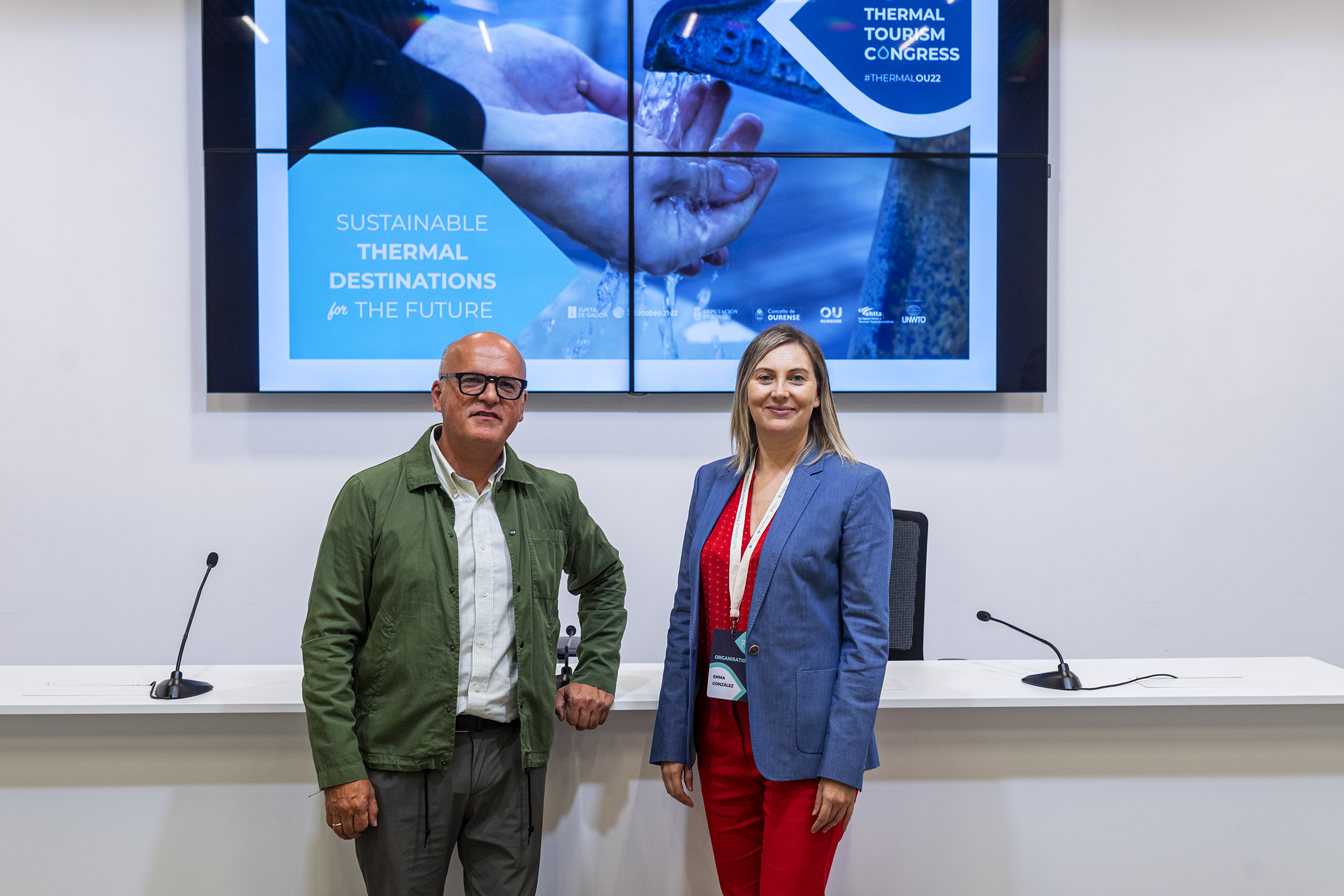 Manuel Baltar (Presidente da Deputación Ourense) acompañado de Emma González (Xerenta do INORDE) presentan o Congreso Mundial de Termalismo que se realizará en Ourense do 27 ó 29 de setembro de 2022.