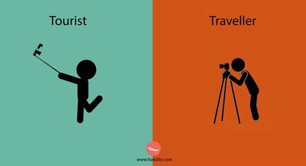 (Global).- El equipo de Holidify ha querido retratar de manera gráfica algunas de las diferencias más comunes entre un turista estándar y un verdadero amante de los viajes. Recordamos que esto es simplemente una generalización, y esperamos que lo tomen con humor. A la hora de viajar las preferencias definen a las personas, ya sea de alojamiento, desplazamiento, comida, equipaje, entre muchos otros factores. Unos gustan de viajes en grupos, otros en solitario. Unos planean mucho y otros nada… En fin, siempre hay diferencias. Y aunque estas comparaciones puedan resultar un poco exageradas, no hay que tomarlas tan literalmente, sino rescatar el punto central: el verdadero viajero (traveller) es más aventurero y el turista (tourist) busca unas vacaciones cómodas. Y nada de eso tiene nada de malo: