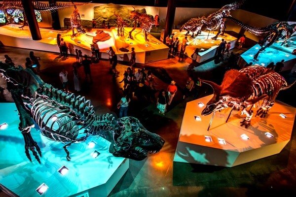 El HMNS tiene decenas de salas y exhibiciones. Si te apasionan los animales prehistóricos, aprovecha para visitar el Salón de Paleontología del museo, donde verás a más de 30 dinosaurios y mamíferos gigantes, incluyendo a un T-Rex. Los depredadores y sus presas están en poses de acción: persiguiendo, comiendo, escapando para salvar sus vidas y haciendo lo que está a su alcance para sobrevivir. Podrás ver y tocar la piel real de un dinosaurio fosilizado.