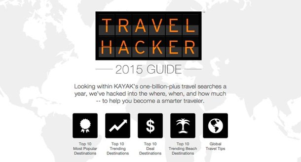 (Global).- En un esfuerzo para hacer más fácil la planificación de viajes, el motor de búsqueda de viajes KAYAK ha anunciado el lanzamiento de su Guía de Viaje Hacker 2015. El recurso interactivo contiene «ideas basadas en datos» de sus más de mil millones de búsquedas anuales de viaje junto con hacks para ayudar a simplificar el proceso de planificación y reserva de los viajeros en 2015.
