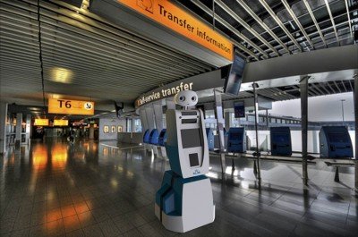 Después de dos años de construcción, programación y pruebas, la aerolínea holandesa KLM ha comenzado la fase de pruebas con su robot Spencer en el Aeropuerto de Amsterdam Schipol, hub de la aerolínea, donde realiza las conexiones de vuelos de red.