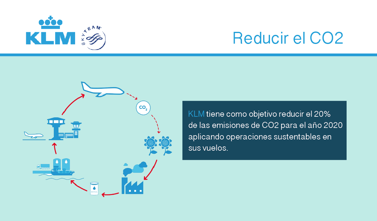 En ese propósito, KLM renovó su flota con los aviones más modernos para rutas intercontinentales que consumen aproximadamente un 20% menos combustible y se encuentra ayudando a la investigación para el desarrollo de un nuevo avión 50% más eficiente y silencioso.