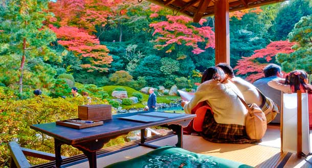 Mientras que Tokio es mejor conocida por ser un portal de la vida moderna de Japón, Kyoto ofrece un tipo diferente de turismo que ofrece más de 1.000 templos budistas y santuarios sintoístas, jardines zen, hostales ryokan y un distrito dedicado a las geishas. Kyoto es considerada la cuna de la cultura geisha y también fue la capital imperial de Japón por más de 1.000 años.