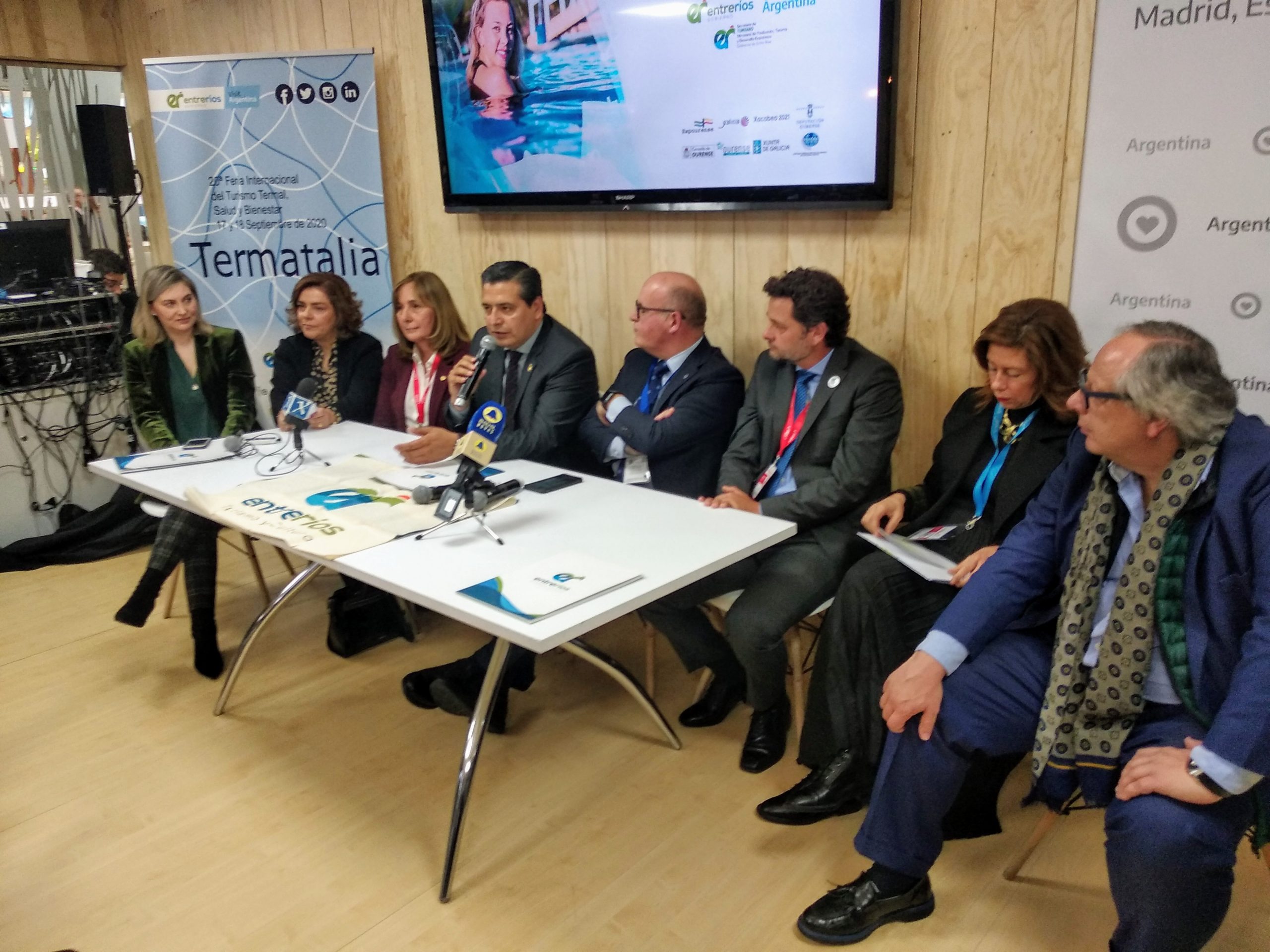 El lanzamiento oficial de Termatalia Entre Ríos – Argentina 2020 tuvo lugar en el stand de Argentina en la Feria Internacional de Turismo de Madrid (FITUR) en un acto en el que ejerció de anfitrión el Secretario General del Instituto de Promoción Turística de la República Argentina (INPROTUR) y gran conocedor y promotor de Termatalia, Ricardo Sosa, que animó a las provincias argentinas y las empresas del sector a participar activamente en Termatalia, “el gran foro de conocimiento y contactos del termalismo a nivel mundial”. Participaron en esta presentación el presidente de la Diputación Provincial de Ourense, de la E.H.T.T.A. y del comité asesor de Termatalia, Manuel Baltar; del secretario de Turismo del Gobierno de Entre Ríos, Gastón Irazusta; de la presidenta de la FEHGRA, Graciela Fresno; del presidente de Balnearios de España y del Instituto para la Calidad Turística (ICTE), Miguel Mirones; de la delegada territorial de la Xunta de Galicia en Ourense, Marisol Díaz y de la concejal de Termalismo de Ourense, Flora Moure. Este acto estuvo presentado por la directora de Termatalia, Emma González.