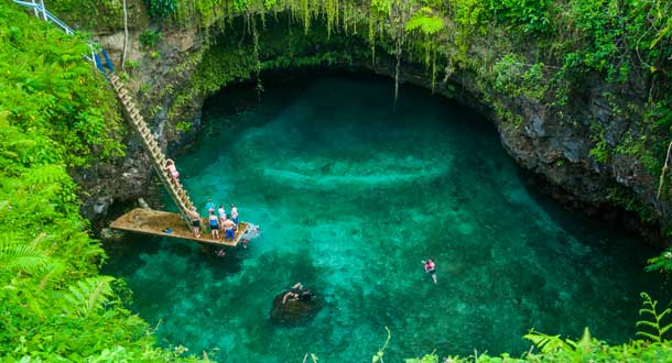 (Samoa).- To Sua Ocean Trench es uno de los lugares con más magia del planeta Tierra. Esta piscina natural en la isla de Samoa, volcánica y fascinante por donde la mires, ofrece a los visitantes un experiencia inolvidable. To Sua, que se traduce literalmente como «agujero grande», se encuentra en el pueblo de Lotofaga, en la costa sur de la isla de Upolu.