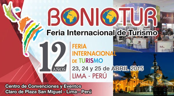 (Perú).- “Conoce las maravillas que tiene el Perú profundo y Latino américa, y organiza tu próximo viaje en familia, con amigos o con el viaje de promoción de tus hijos”. Este 23, 24 y 25 de abril del presente año, se dará inicio a la 12a. Feria Internacional de Turismo BONIOTUR 2015, en el Centro de Convenciones Claro de Plaza San Miguel. Todo listo para el encuentro anual de empresarios del sector turismo, el evento más distinguido de la familia turística, durante tres días la industria del turismo nacional e internacional, se reunirá en Lima para realizar grandes negocios, contactos comerciales, ventas, y promoción en turismo.