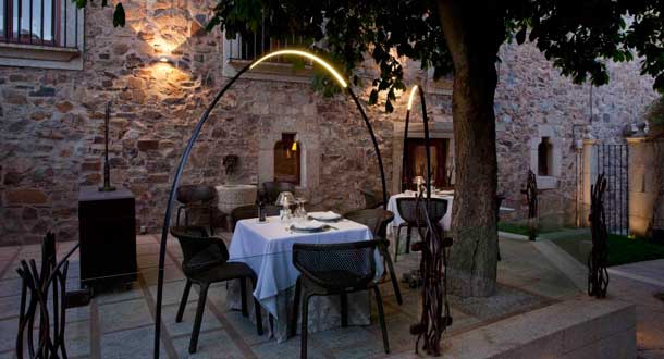 Restaurante Atrio. Situado en el casco antiguo de la ciudad es uno de los mejores restaurantes de España y cuenta con dos estrellas Michelin a sus espaldas. La cocina a cargo del chef Toño Pérez consigue salirse de la sencillez general de la oferta de esta ciudad. Recetas innovadoras de platos clásicos con un producto de alta calidad. Como no podía ser menos el cerdo ibérico cobra gran importancia en su oferta y el helado de Torta del Casar es excepcional.