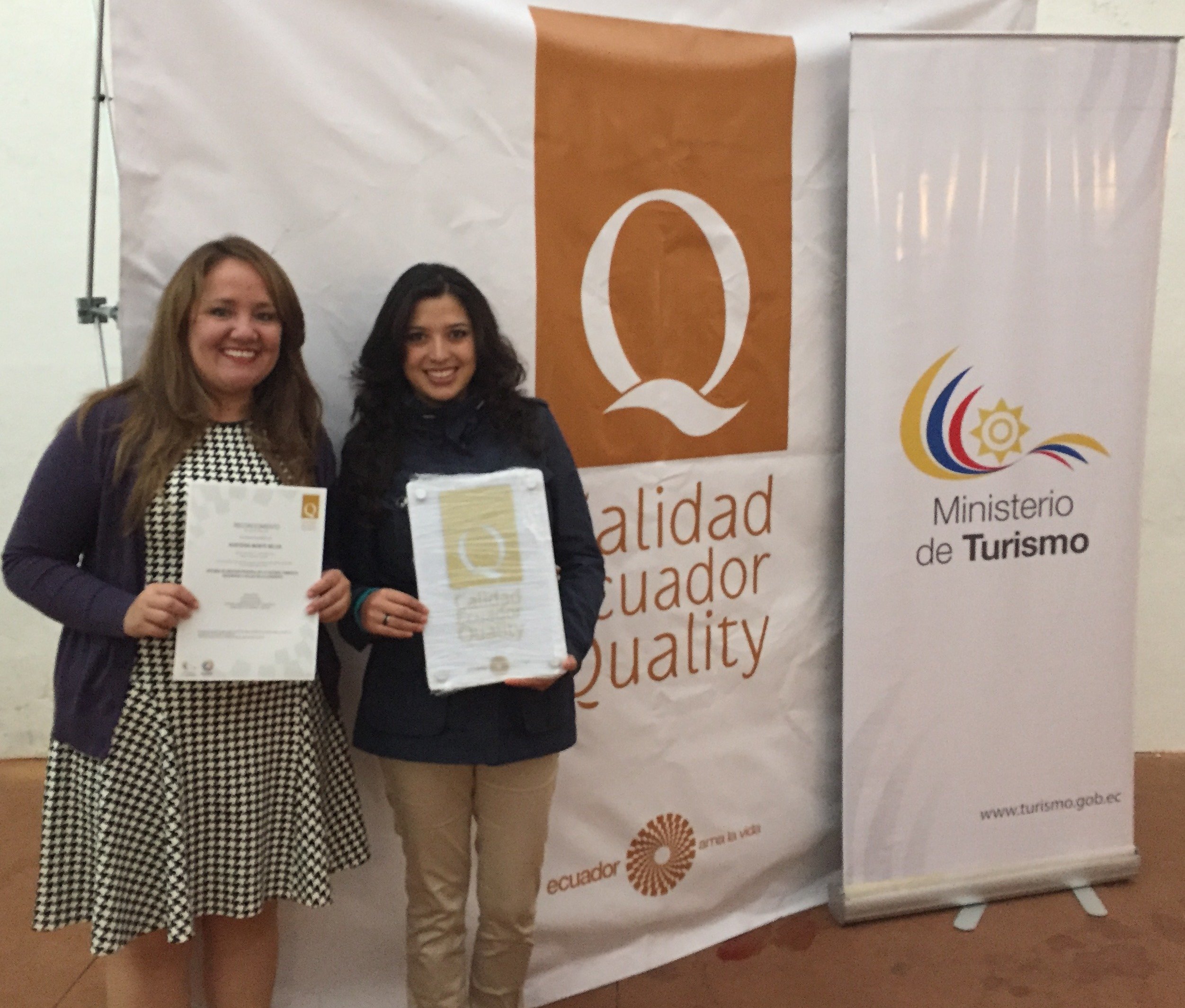 Diciembre 21 de 2015 – Hostería Monteselva, ubicada en Baños de Agua Santa logra reconocimiento “Q” de calidad, otorgada por el Ministerio de Turismo del Ecuador. Este reconocimiento tiene como objetivo principal garantizar la calidad, seguridad y profesionalidad de los servidores turísticos del país.