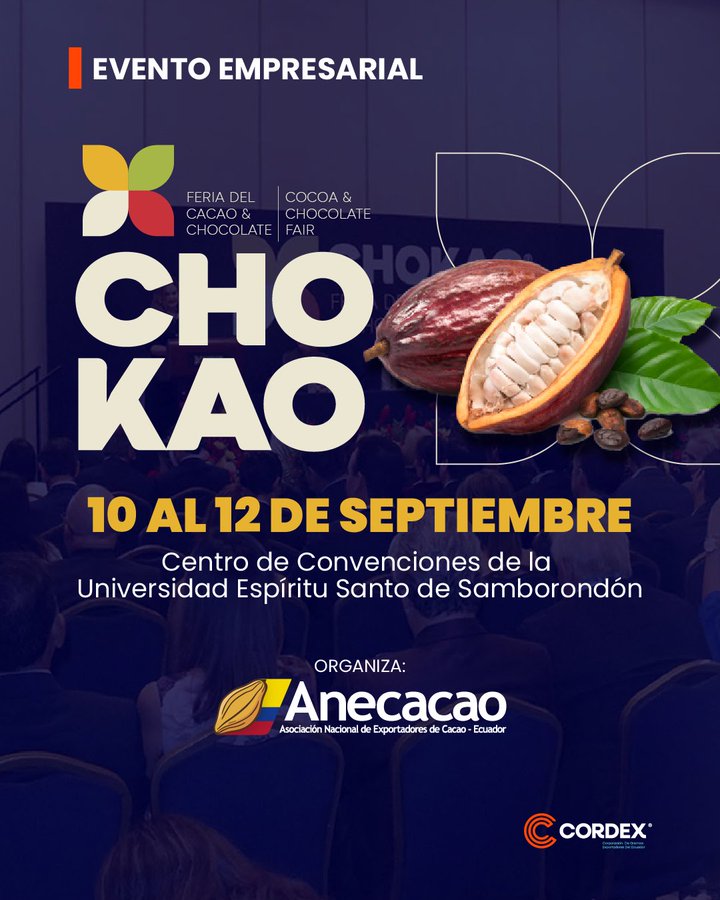 Chokao, la Feria Nacional de Ecuador del Cacao y el Chocolate, prevé generar negocios por unos 15 millones de dólares. La cita tendrá lugar entre el 10 y el 12 de septiembre del 2024, informó este viernes 7 de junio del 2024 la Asociación Nacional de Exportadores de Cacao del Ecuador (Anecacao)