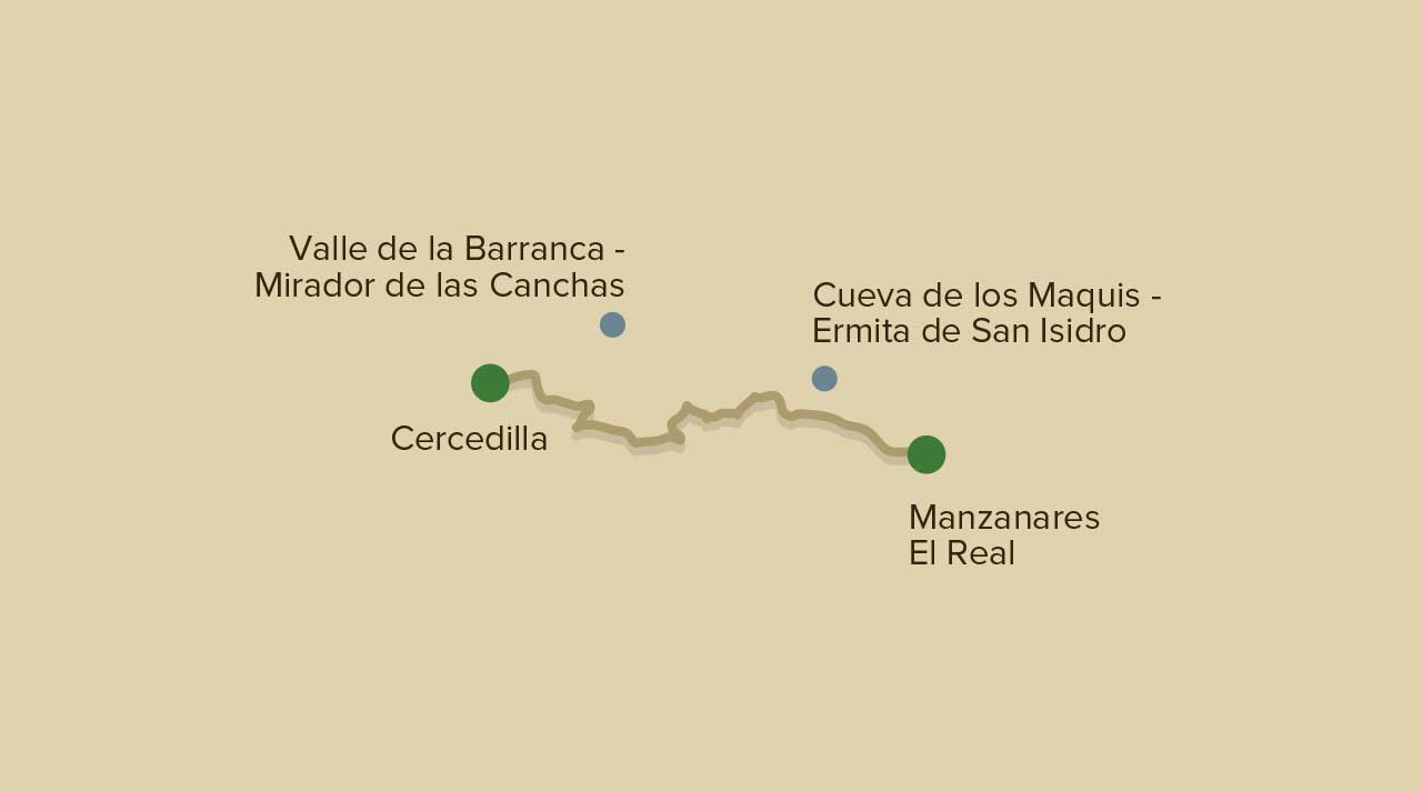Después de descansar en Manzanares El Real y disfrutar del Castillo de los Mendoza, una joya arquitectónica que servía de fortaleza defensiva para los Mendoza, la ruta sigue hacia la Maliciosa llegando a la cueva de los Maquis. Aquí empieza la subida hacia Navacerrada pero antes, el caminante podrá disfrutar del sendero del valle de la Barranca, un espacio natural de gran belleza.