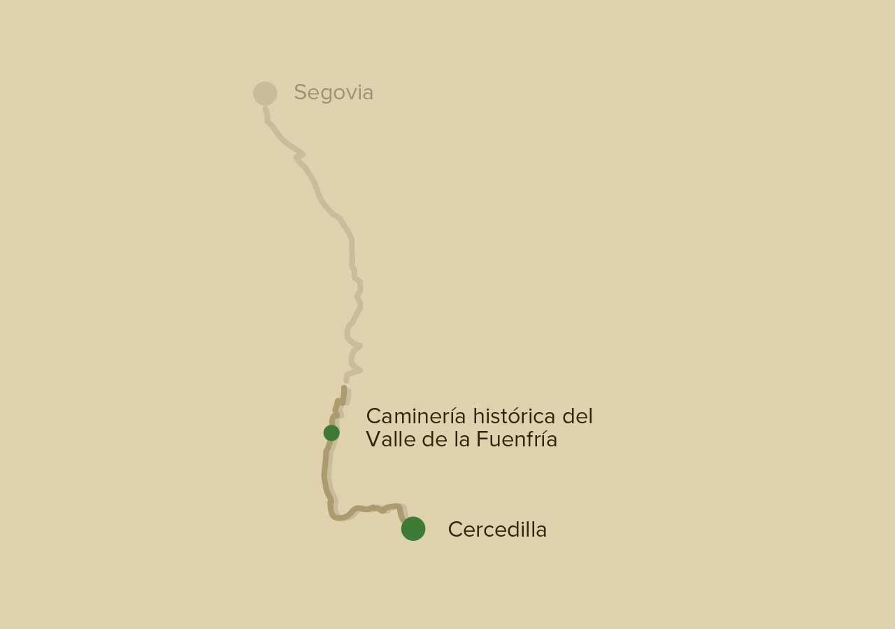 Después de una etapa tranquila, el peregrino llega a Cercedilla donde encontrará albergues para descansar y preparase para la siguiente etapa. La etapa que parte de aquí y le lleva a Segovia no es fácil y le adentra en el Valle de la Fuenfría, un espacio único de gran belleza donde disfrutar de la antigua calzada romana. El peregrino llega a una altitud de 1.796 metros para comenzar el descenso que le llevará hasta la ciudad de Segovia.