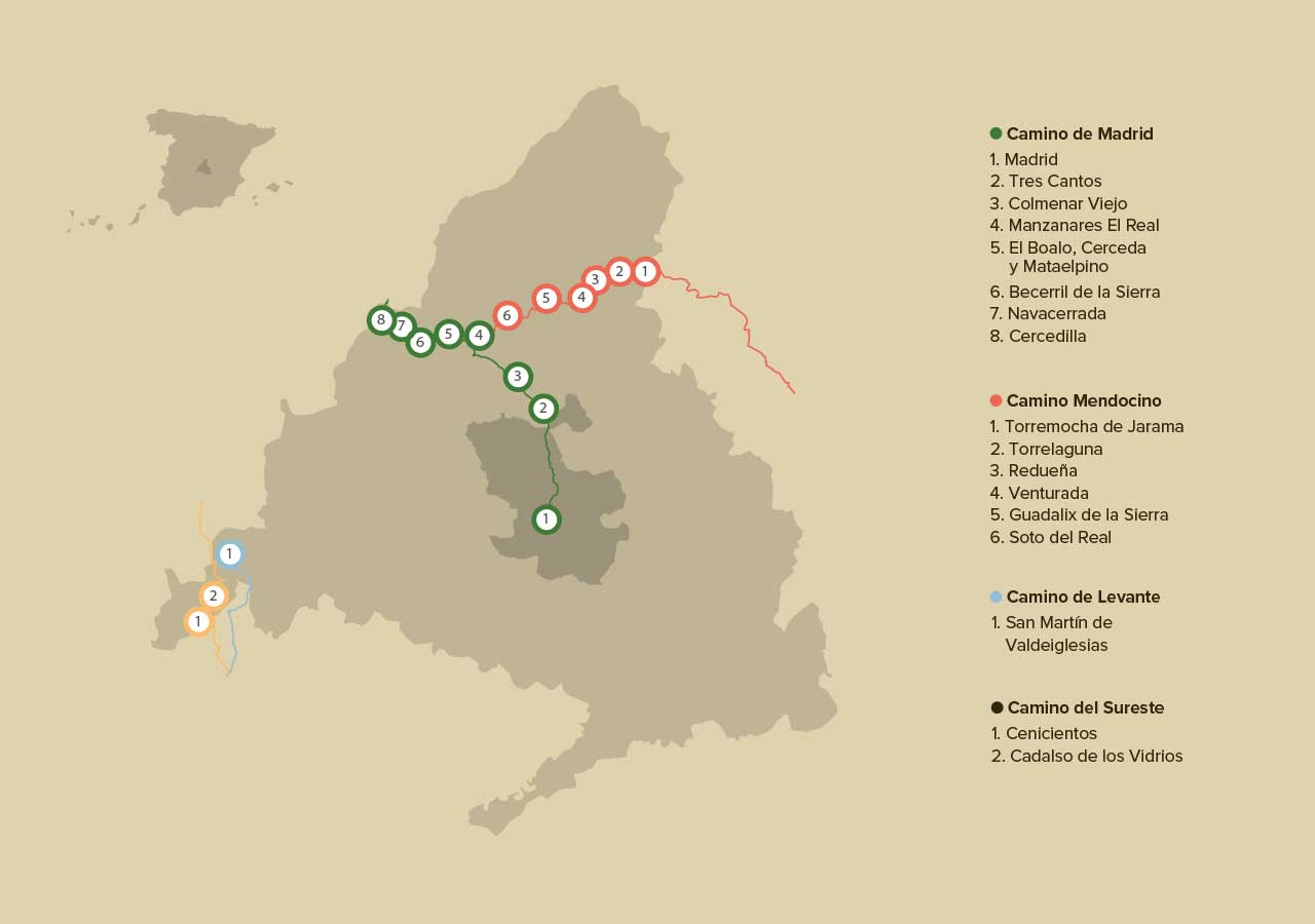 Los cuatro caminos que pasan por la Comunidad de Madrid