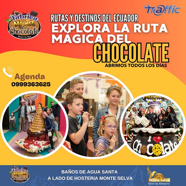 La Ruta Mágica del Chocolate en la Fábrica Mágica de Chocolate en Baños de Agua Santa promete ser una experiencia que ningún amante del chocolate y la aventura querrá perderse. Ven y descubre este nuevo destino familiar, donde los sabores, los paisajes y las historias se combinan para crear recuerdos inolvidables. ¡Te esperamos para vivir juntos la magia del chocolate!