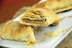 Otro dulce típico de Sintra, los travesseiros (almohadas) son pasteles de hojaldre rellenos de crema de almendra y huevo, cubiertos con azúcar. Su forma alargada y su relleno cremoso los convierten en un deleite para el paladar.
