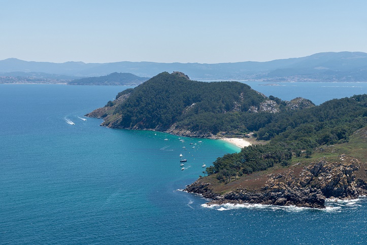 Compartido por las provincias gallegas de A Coruña y Pontevedra, en el extremo noroeste de España, se encuentra el Parque Nacional marítimo-terrestre de las Islas Atlánticas de Galicia, en el corazón de las Rías Baixas. En este lugar donde agua dulce y agua salada confluyen se crea un ecosistema único, repleto de vida marina y terrestre. En el medio terrestre destacan los sistemas dunares, los acantilados y los matorrales de tojo y brezo. En el medio marino, con fondos rocosos, son importantes las comunidades de bosques de algas pardas que acogen una gran variedad de seres vivos. Este trío de islas, (Illa de Monteagudo, Illa do Faro y la sureña Illa do San Martiño) que combinan sus playas deslumbrantes y lagunas cristalinas con acantilados escarpados y miradores rocosos están libres de tráfico, lo que enfatiza la sensación de «fin del mundo». Juntas forman un rompeolas que protege la ciudad costera de Vigo de la furia del Atlántico.