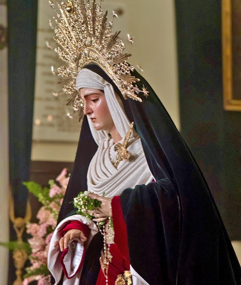 Bienaventurada Tú, Virgen Santísima de las Angustias, que en este día recibirás la veneración de tus hijos, fieles y devotos como muestra de su profuso Amor a la Madre de Dios en Alcalá del Río.