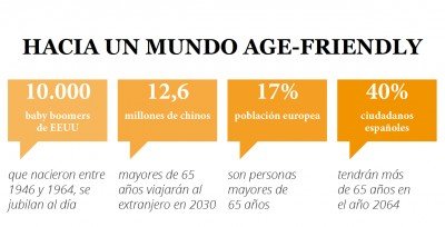 El envejecimiento de la población española no va a detenerse y se calcula que hacia 2023 habrá 19,7 millones de personas mayores de 64 años en nuestro país. Un millón y medio más que en la actualidad. Pero según una reciente encuesta, el 72% de los españoles cree que no podrá mantener su actual nivel de vida con la pensión pública al jubilarse. ¿Cómo afectarán estas tendencias al sector turístico? Según apunta la Organización Mundial de la Salud, vamos hacia un mundo Age Friendly.