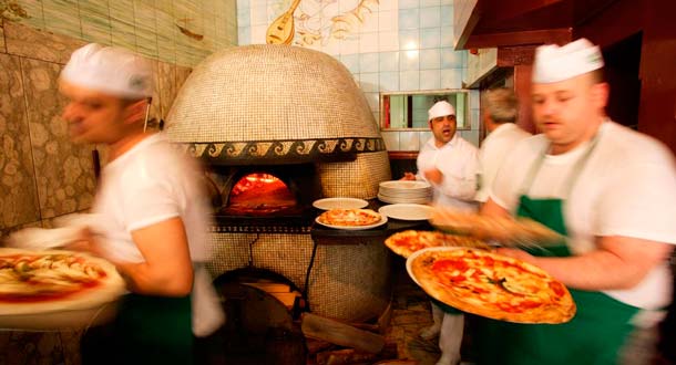La pizzería más famosa de Nápoles es Da Michele (Via Cesare Sersale 1), todo un alarde de obstinación que lleva la austeridad al extremo. Sombría y anticuada, solo ofrece dos tipos de pizza: la clásica margherita y la marinara (tomate, ajo y orégano). Hay que coger número y ponerse a la cola. También famoso y considerada como el auténtico rey de la pizza es Gino Sorbillo (Via dei Tribunal), cuya pizzería está en el centro histórico. Las prepara gigantescas, cocidas a la perfección en horno de leña. Después, como postre, se aconseja pedir un aterciopelado semifreddo.