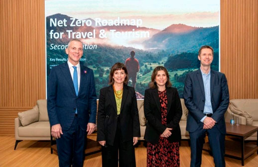 Dentro de sus intervenciones, la Presidenta del organismo global presentó la segunda edición de su Hoja de Ruta Net Zero para el sector, revelando que el número de empresas globales de viajes y turismo que establecen objetivos climáticos ha aumentado a un 53% en los últimos tres años, y más de la mitad está comprometida con la reducción de emisiones de Gases de Efecto Invernadero. (GEI).